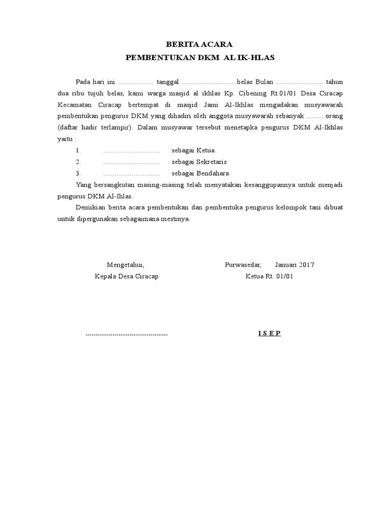 Adart organisasi adart berfungsi untuk menggambarkan mekanisme kerja suatu organisas. Untuk mengantarkan perjalanan kedinasan anda maka perlu adanya surat dinas yang digunakan sebagai dokumen resmi yang menjadi barang bukti. Contoh surat pemberitahuan wisata hut karang taruna. Nah dalam suatu perusahaan atau instansi tentu ada banyak kegiatan baik itu kegiatan rapat. Pekerjaan terkadang membuat kita dipercaya melakukan perjalanan kedinasan. Contoh surat permohonan wawancara skripsi berbagai jurusan. Find out the most recent pictures of contoh surat berita acara pembentukan organisasi here, so you can have the picture here simply. Surat undangan jamaah masjid untuk acara isra mi'raj. Contoh sk pembentukan panitia pengawas pemilihan kepala desa. Petunjuk penyelenggaraan pokok pokok organisasi gerakan. Contoh surat pengunduran diri sebagai ketua rt wall ppx. Berikut ini contoh berita acara yang baik dan benar serta menarik perhatian yang dapat anda gunakan dalam tema maupun format penulisan surat. Contoh surat rapat pertemuan remaja karang taruna.
